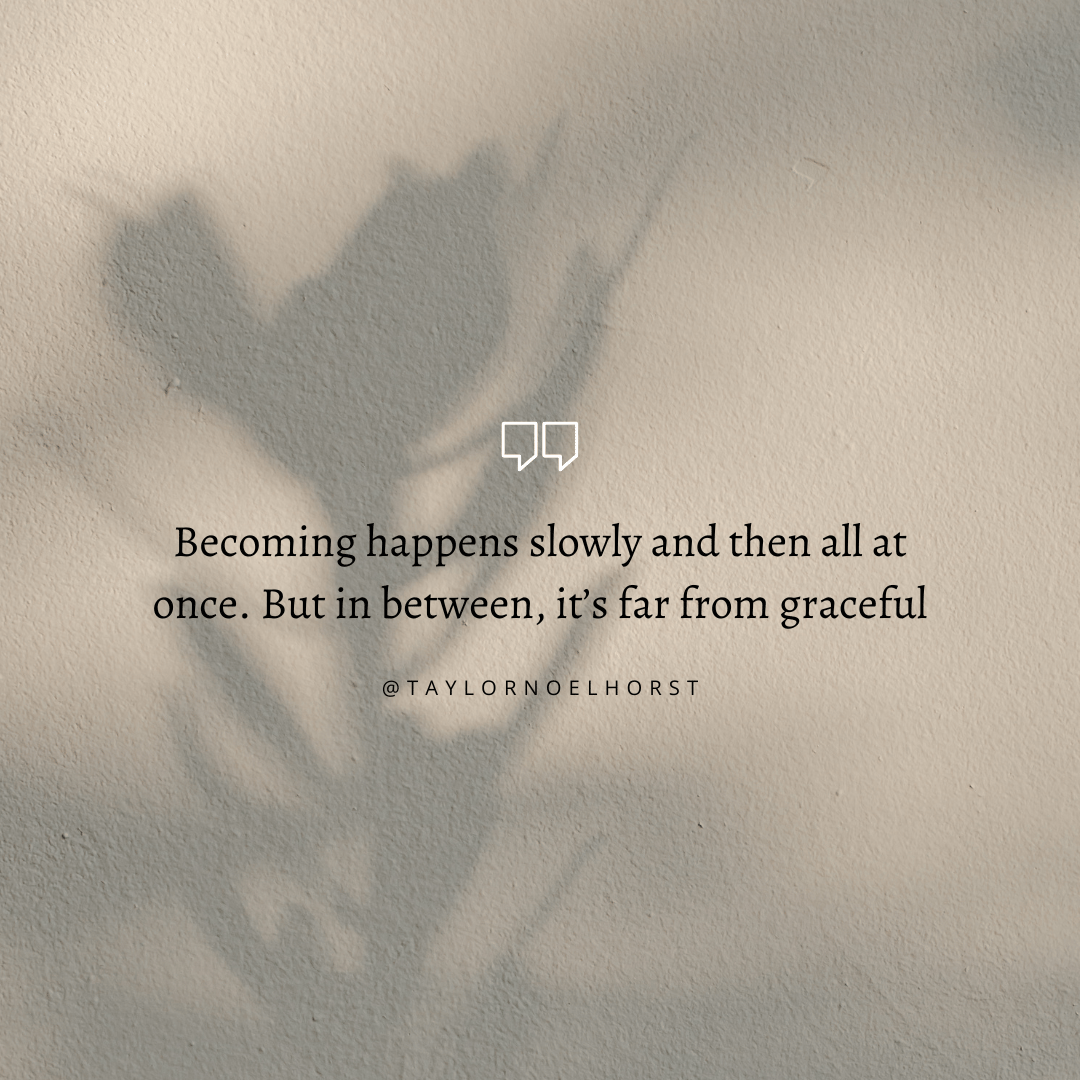 Becoming happens slowly and then all at once. But in between, it’s far from graceful.